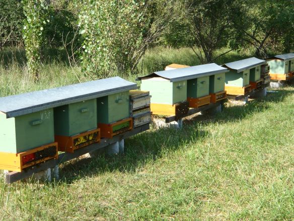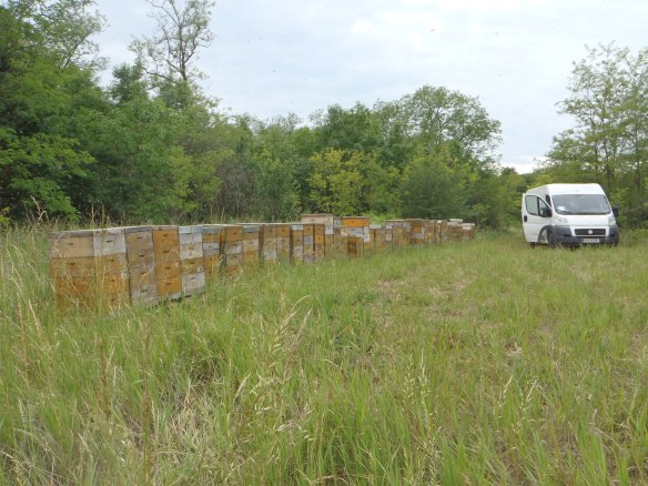 Etukäteen en osannut ajatella miten erilaista mehiläishoito Itävallassa saattoi olla. Suurin ero oli, että Itävallassa mehiläistarhaajat siirtävät pesiään satokasvien kukinnan mukaan. Pääsatokasvit joiden mukaan pesiä siirretään ovat kukkimisjärjestyksessä rypsi, akaasia, pihta (abies alba), josta saadaan tummaa mesikastehunajaa, lehmus, josta saadaan vaalempaa mesikastehunajaa ja auringonkukka. Pesien siirtämisen varjopuoli on, että se täytyy tehdä yöllä kun kaikki mehiläiset ovat pesissä. Siirto tulee lisäksi saada päätökseen aamun sarastaessa, jotteivat mehiläiset joudu viettämään liian pitkää aikaa pesissään. Alla olevassa kuvassa on mehiläispesiä akaasiahunajan satoalueella.