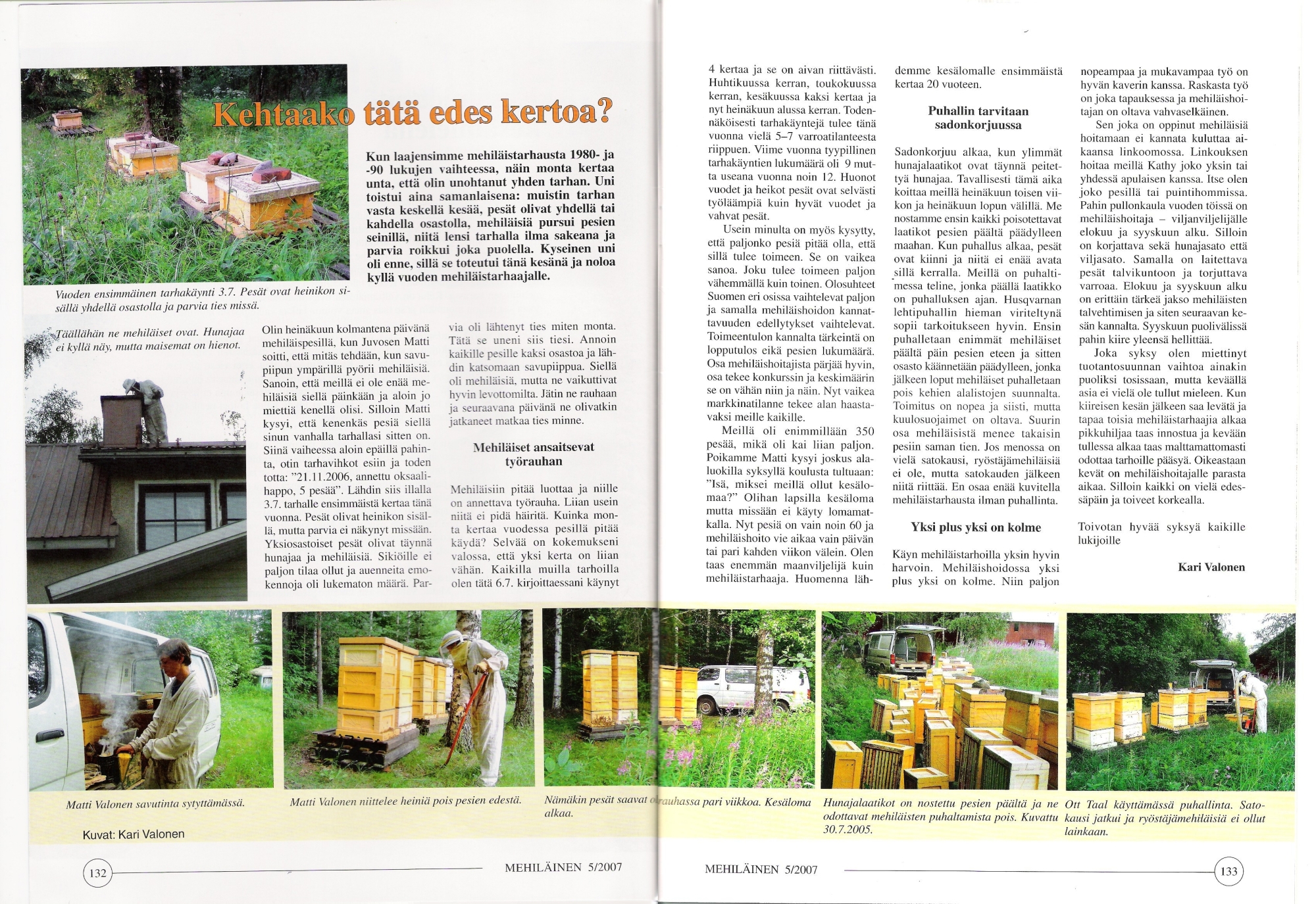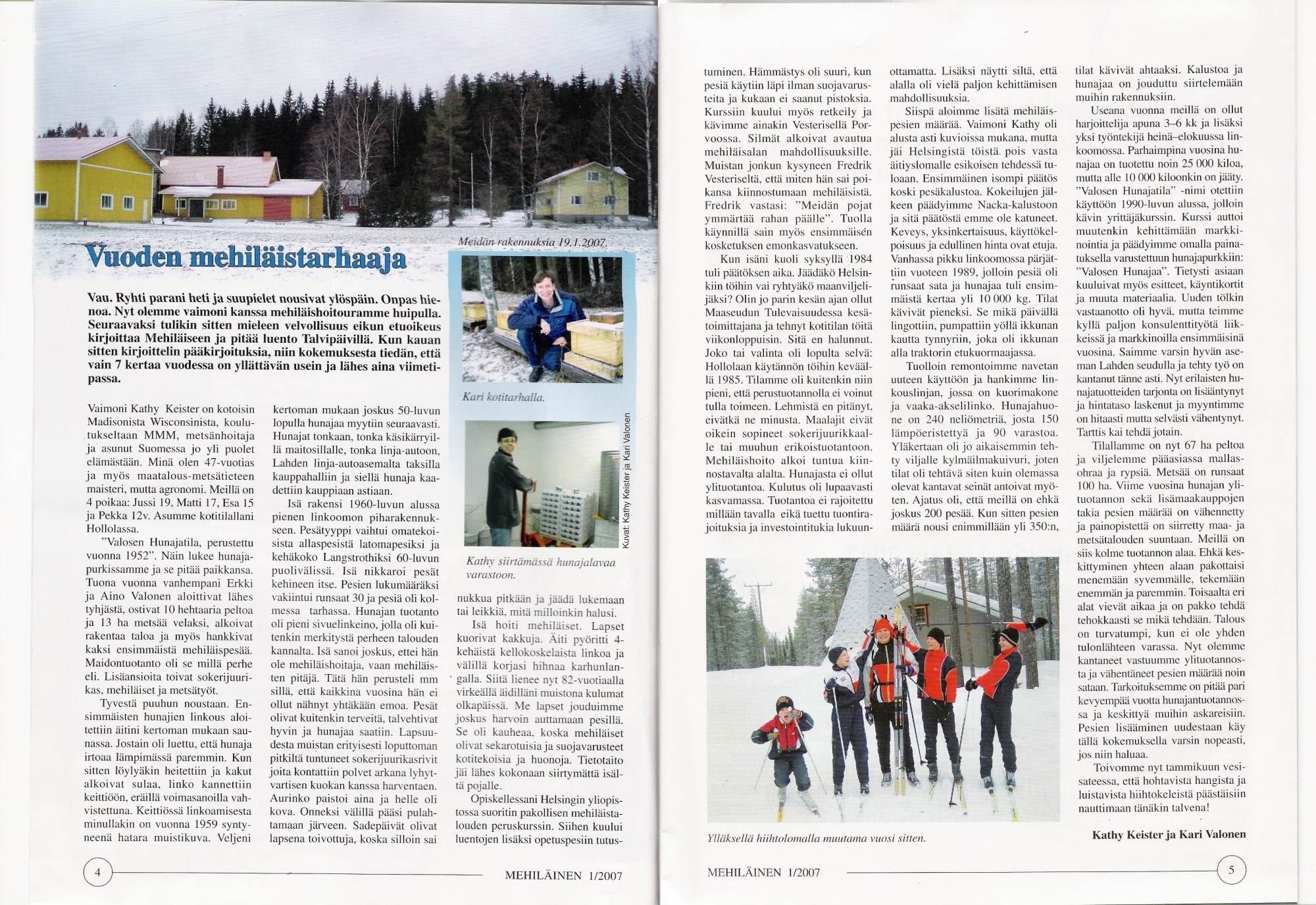 Valikoima Vuoden Mehiläistarhaaja-artikkelisarjasta vuoden 2007 Mehiläinen-lehdestä