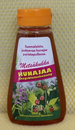 Valosen hunajatilan metsäkukka-hunaja tulee Evon metsäalueella Lammilla sijaitsevilta tarhoiltamme. Mehiläiset käyvät pesien sijainnin ansiosta vain metsäkasvien kukissa. Tärkeimpiin satokasveihin lukeutuvat muun muassa mustikka, vadelma, horsma, kanerva ja puolukka. Metsäkukista haetun meden ansiosta hunajaan tulee erilainen maku, joka kuvailujen lukemisen sijasta on paras kokea itse. Puristepullo tekee juoksevan hunajan annostelemisesta helppoa.